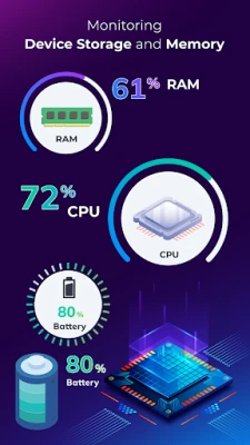 - Phone monitoring : Check CPU, RAM, Battery status with battery percentage, battery temperature and voltage.