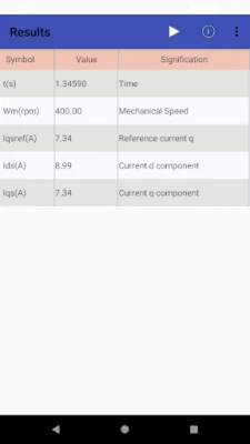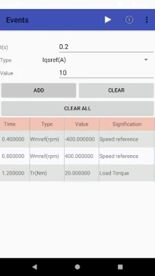 Several events can be applied during the simulation, such as changes in load torque at different times, reference speeds and reference currents Idsref and Iqsref, as well as resistive parameter variations.