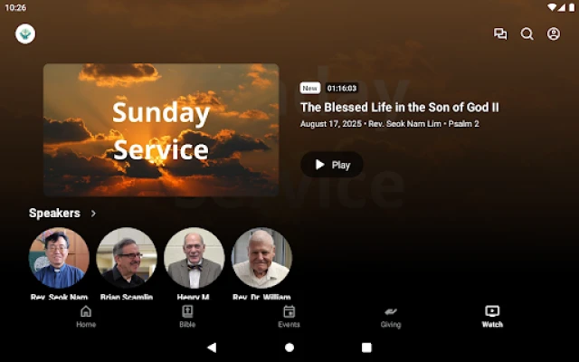 This app helps you stay connected to the daily life of our church. You can watch or listen to past sermons, receive updates through push notifications, read the Bible, and check out our events calendar.